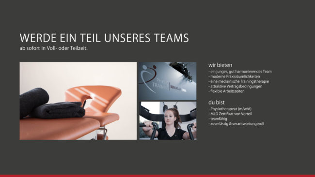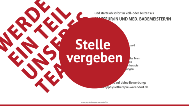 Wir freuen uns auf deine aussagekräftige Bewerbung: kontakt@physiotherapie-warendorf.de